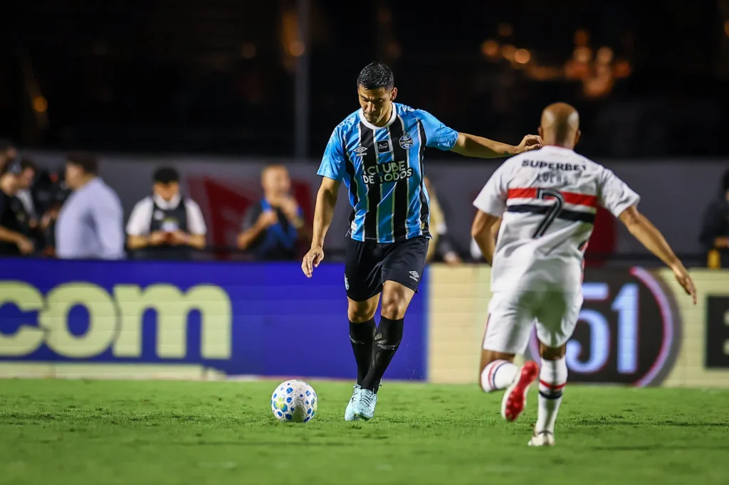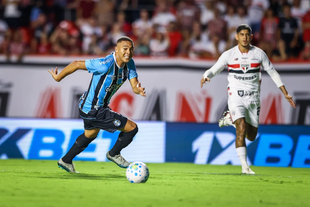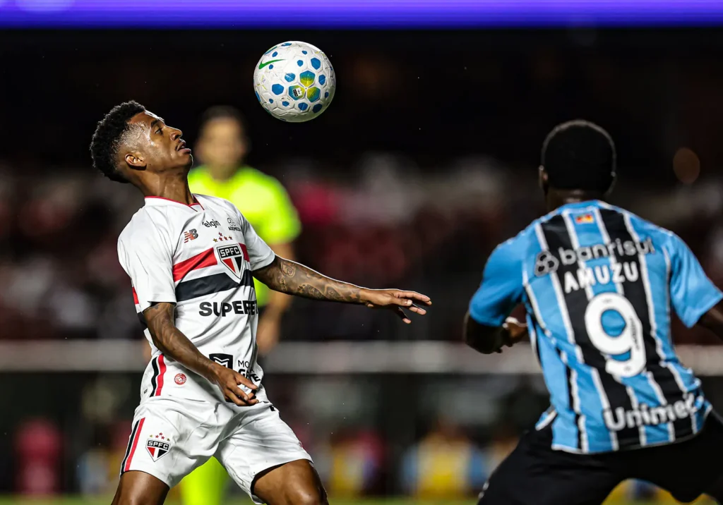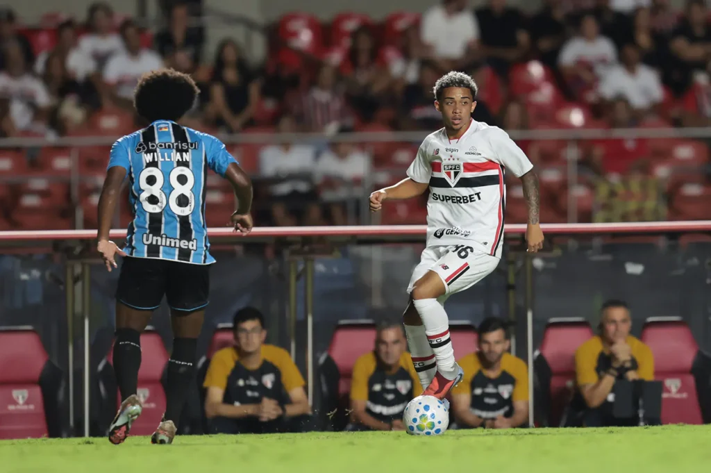 Com 35 minutos, Marcos Antônio, mais uma vez, encontrou outro lançamento nas costas da zaga do Grêmio. Calleri pegou de primeira dentro da área e estufou as redes, mas a assistente marcou o impedimento. Aos 37, o São Paulo recuperou, Lucas cruzou rasteiro para o meio da área e Calleri se antecipou, mas mandou pela linha de fundo. Com 42, Enzo Díaz dominou no peito e bateu para o gol, vendo a bola passar muito perto do gol.