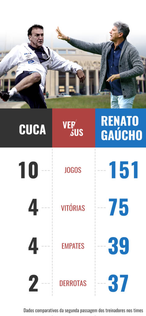 Jogos em que Cuca e Renato comandaram as equipes, ambos na segunda passagem por Santos e Grêmio (Foto: Arte/Gazeta Esportiva)