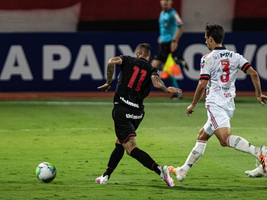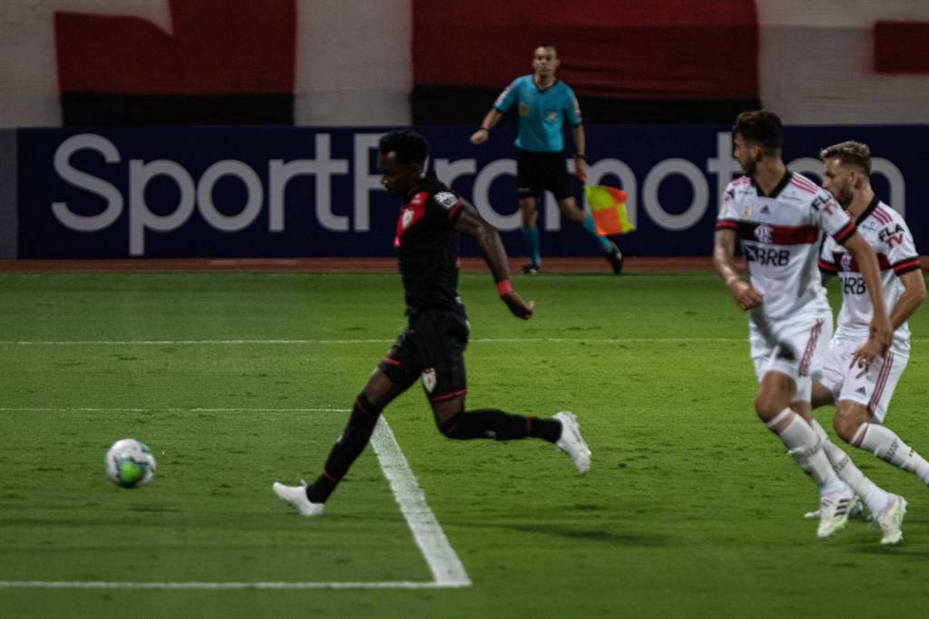 Com Rodrigo Caio improvisado na lateral direita, o Flamengo viu o Atlético dominar o primeiro tempo e abrir 2 a 0 após gols de Hyuri e Jorginho. Na etapa final, os donos da casa ainda ampliaram com Ferrareis.