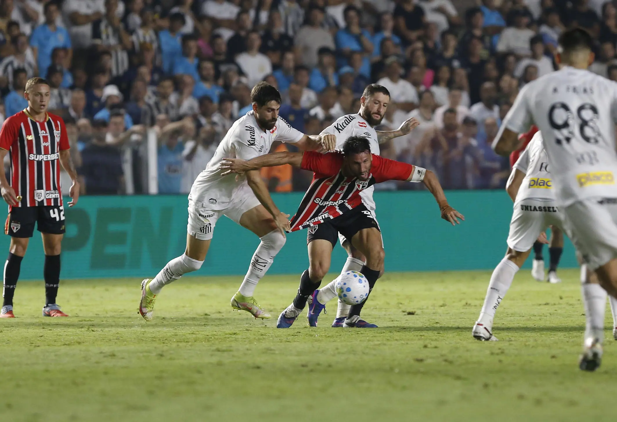 🟨 Cartões Amarelos: Adonis Frías, Rony, Zé Rafael, Escobar e Schmidt (Santos); Alan Franco (São Paulo)