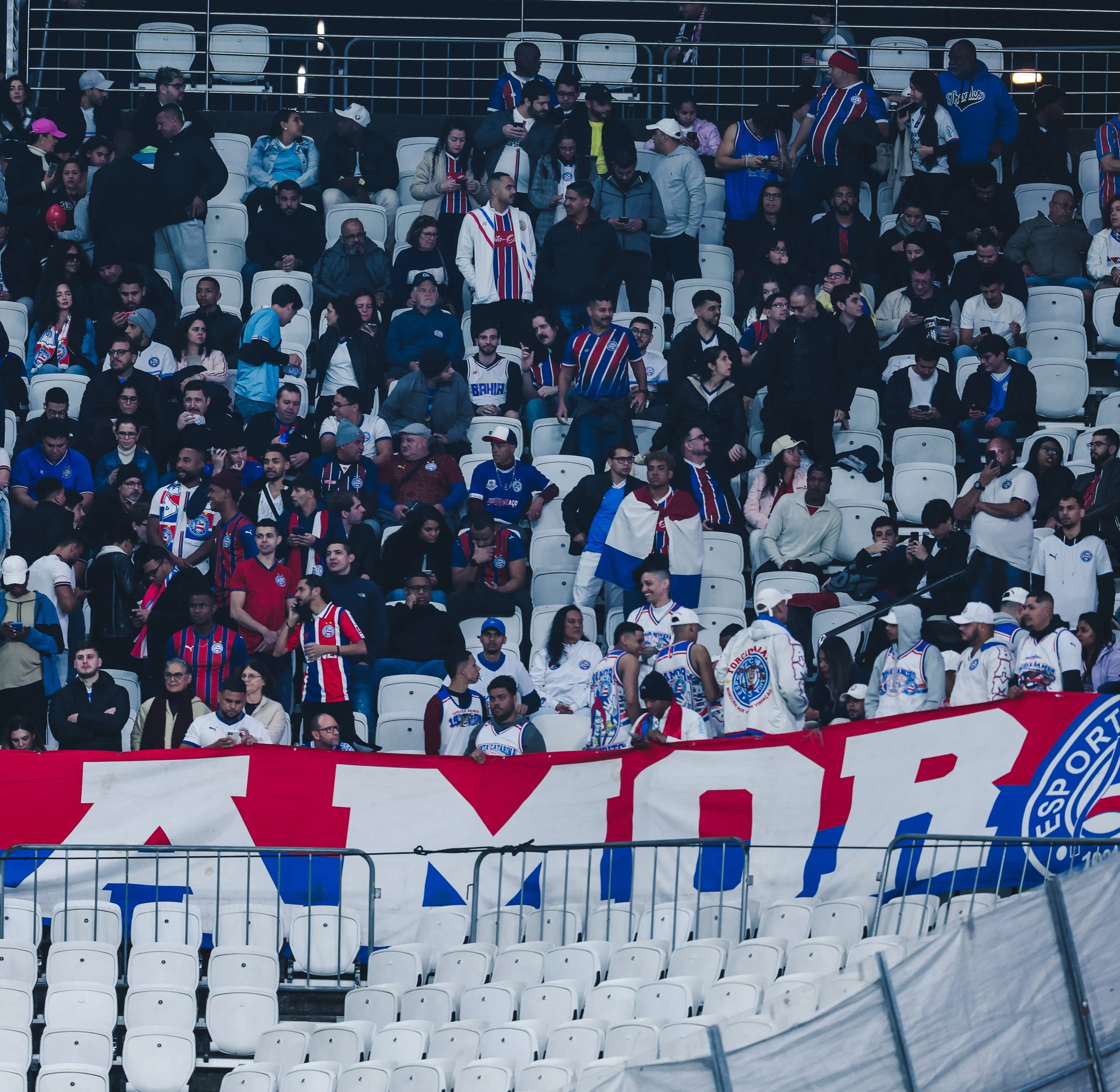 Antes mesmo da bola rolar, torcedores dos times já trocaram farpas. A torcida do Bahia cantou "Corinthians, falido", e os corintianos responderam com vaias e xingamentos. "Ei, Bahia, vai tomar no c...", foi o grito da torcida alvinegra.