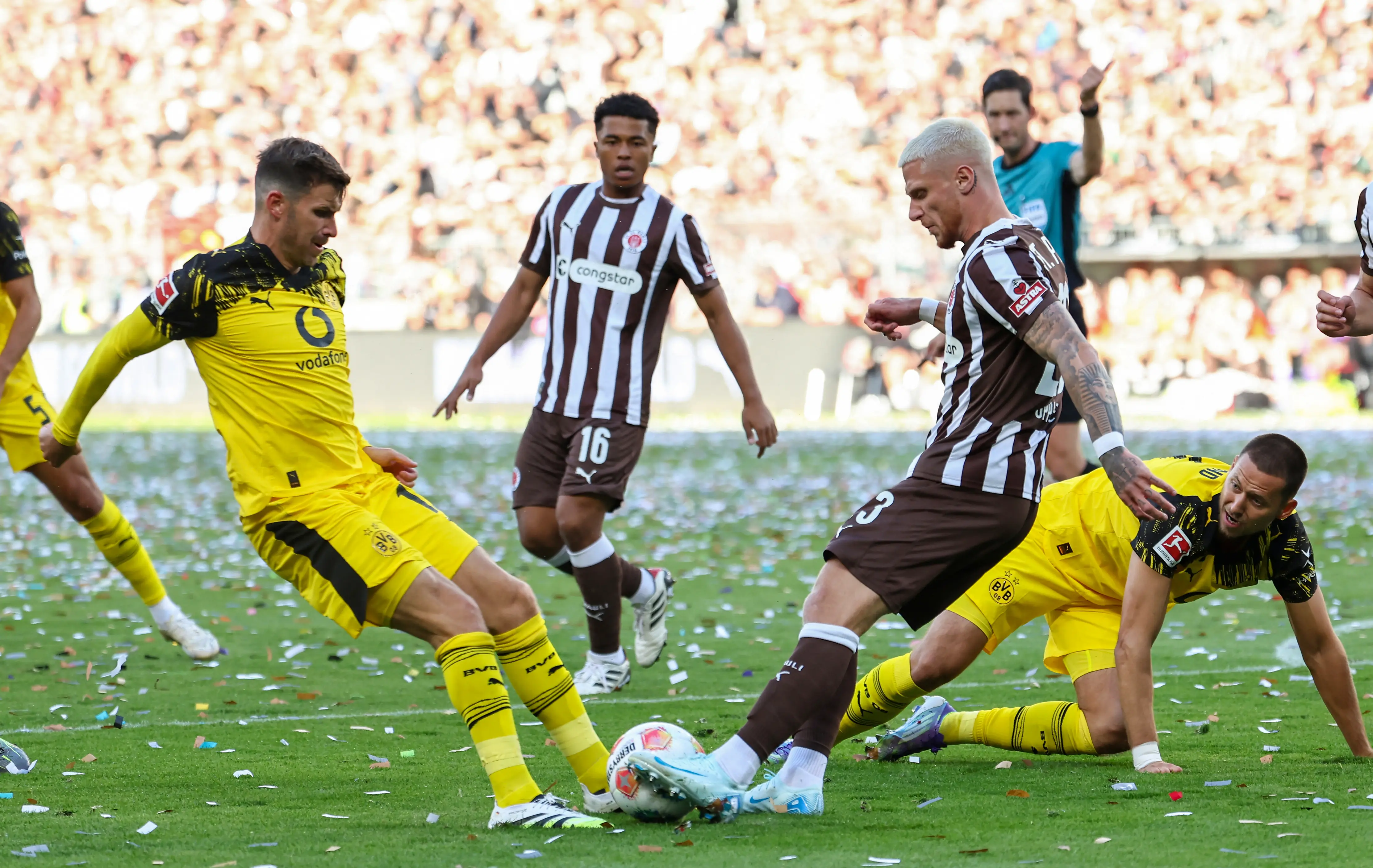 No segundo tempo, logo aos cinco minutos, o St. Pauli empatou após roubo de bola no ataque: Danel Sinani cruzou na área e Hountondji completou de cabeça. O Borussia só voltou a ficar na frente aos 22, com Anton finalizando de perna direita após assistência de Felix Nmecha.