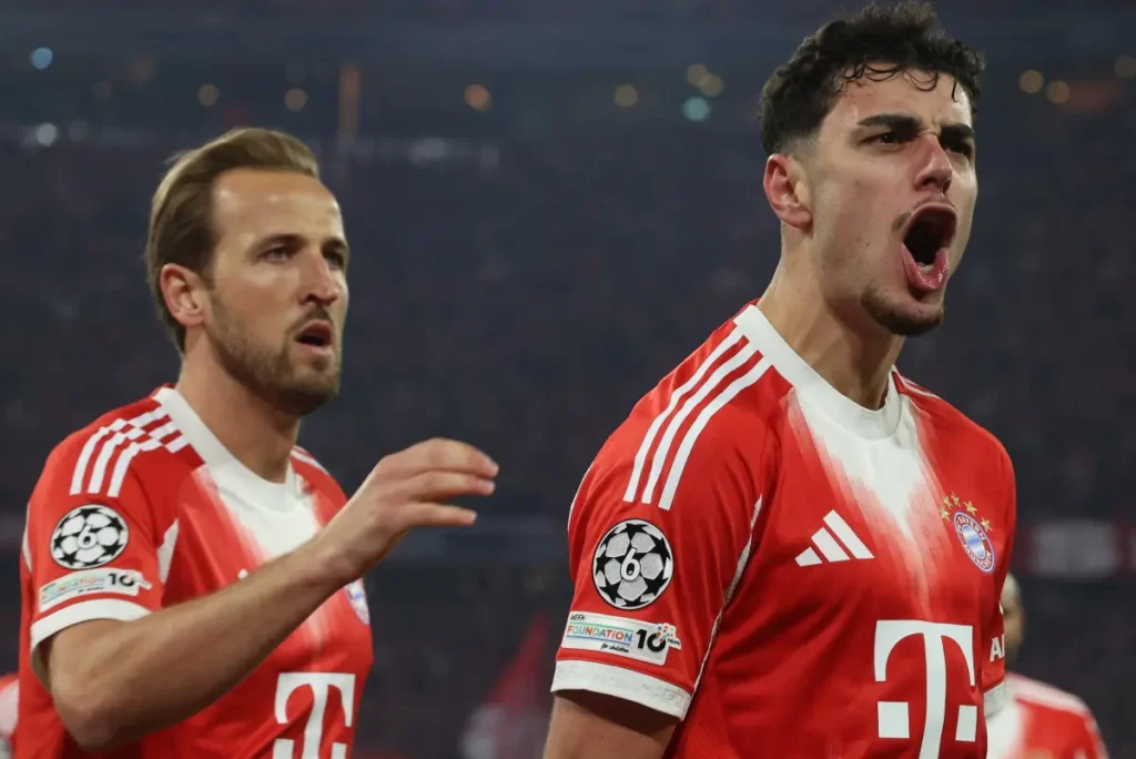 A primeira etapa seguiu movimentada na Allianz Arena. Aos 29 minutos, após falta de Laimer em Brahim Díaz, Arda Güler cobrou com precisão no ângulo, e, apesar do toque de Neuer, recolocou o Real Madrid em vantagem. O Bayern voltou a reagir aos 38, quando Upamecano lançou para Kane, que finalizou cruzado para deixar tudo igual. Já na reta final, aos 42, Bellingham puxou contra-ataque, acionou Vinícius Júnior, que cruzou para Mbappé marcar e colocar os espanhóis novamente à frente.