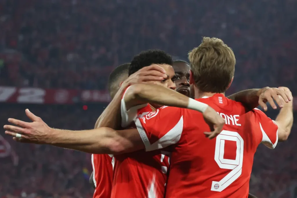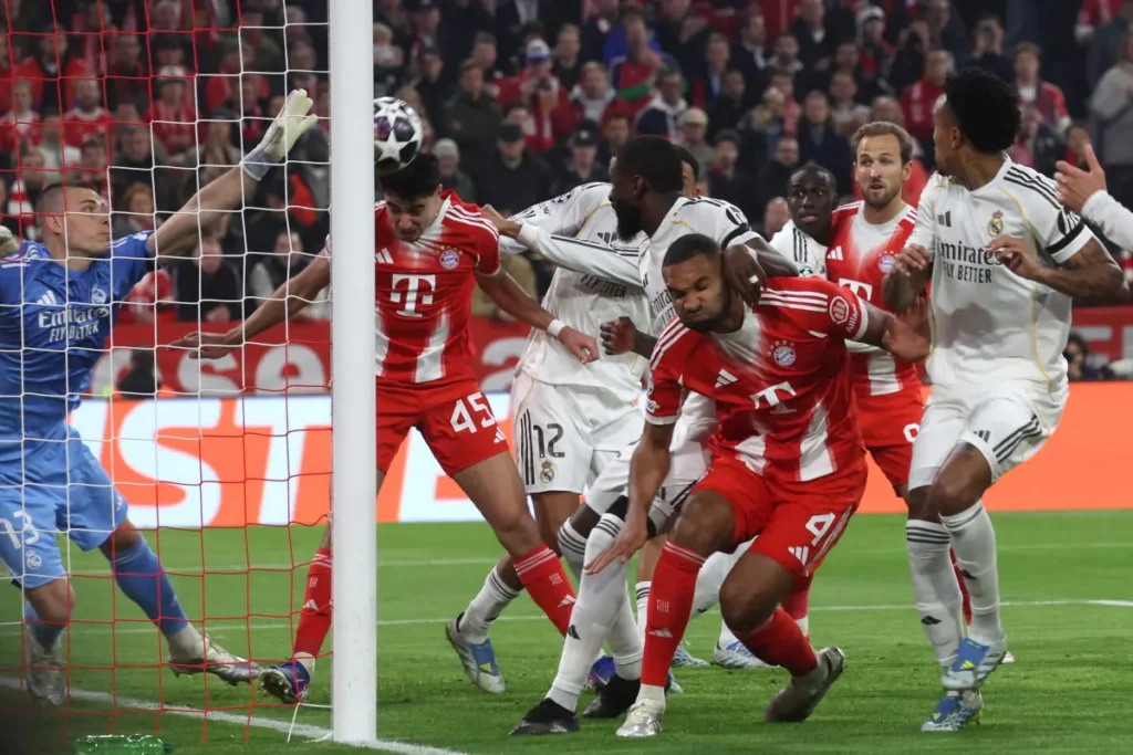 O jogo começou em alta intensidade. Logo aos 35 segundos, Neuer errou na saída de bola, e Arda Güler aproveitou o gol vazio para finalizar de longe e abrir o placar. A resposta do Bayern veio rapidamente: seis minutos depois, Kimmich cobrou escanteio, Pavlovic se antecipou a Lunin e empatou de cabeça.