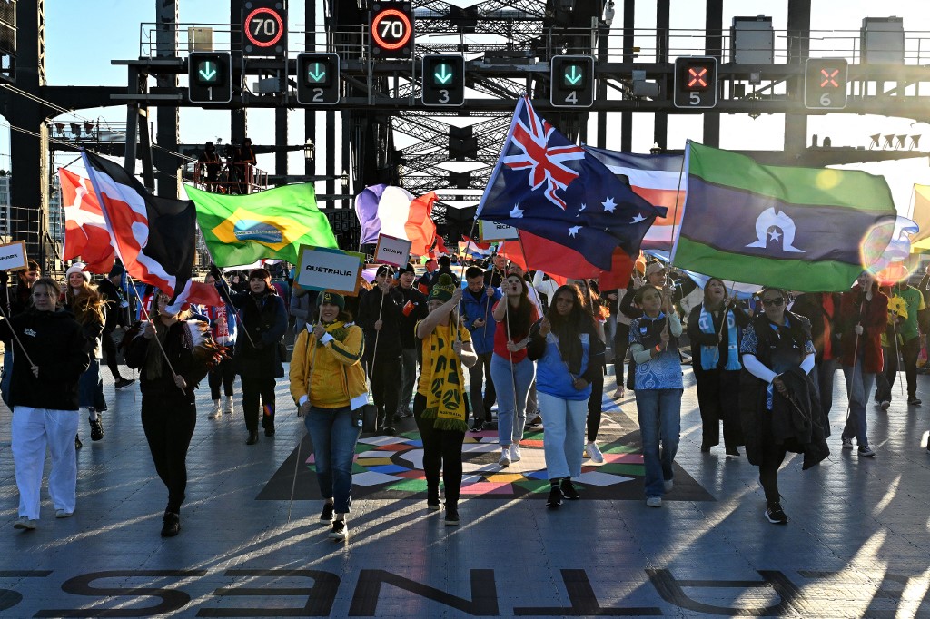 A Fifa calculou que cerca de 4.000 pessoas enfrentaram o frio para participar do evento matinal na Sydney Harbour Bridge.