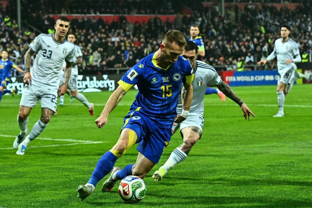 Os bósnios encerraram o sonho italiano e voltaram à Copa do Mundo após 14 anos. Jogando em casa, a seleção de Dzeko derrotou os tetracampeões mundiais nos pênaltis, por 4 a 1, após empate em 1 a 1 nos 120 minutos. A Bósnia e Herzegovina está no Grupo B, ao lado de Canadá, Catar e Suíça.