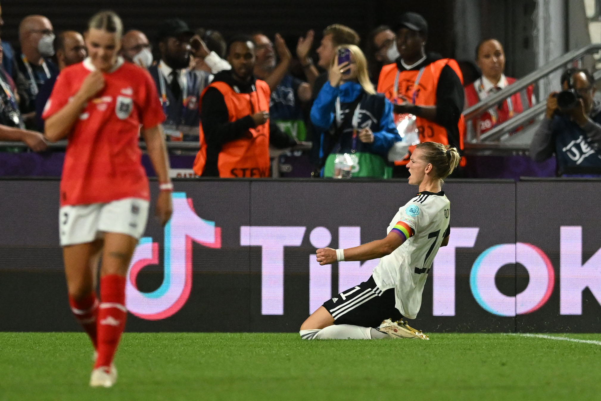 A Alemanha se classificou para as semifinais da Eurocopa feminina depois de vencer sua vizinha Áustria por 2 a 0 pelas quartas de final nesta quinta-feira, em Brentford, na Inglaterra.
