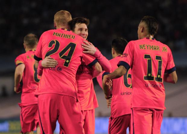 Com o gol de Mathieu, o Barcelona não precisou de Messi e Neymar para bater o Celta de Vigo (Foto:MIGUEL RIOPA) - Credito: AFP
