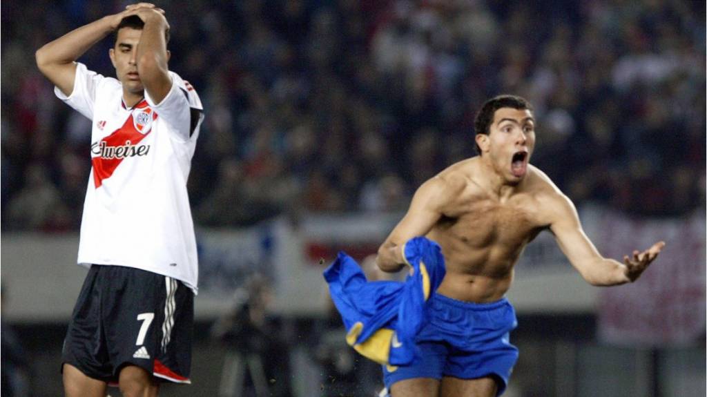 Tevez provocou o River Plate na comemoração do gol de empate (Foto: AFP)