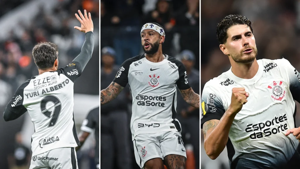 Memphis e Yuri Alberto foram os destaques do Timão em 2024. Pedro Raul voltou de empréstimo e está à disposição para 2026. - Fotos: Mauro Horita/Ag. Paulistão e Diego Soares/Ag.Paulistão