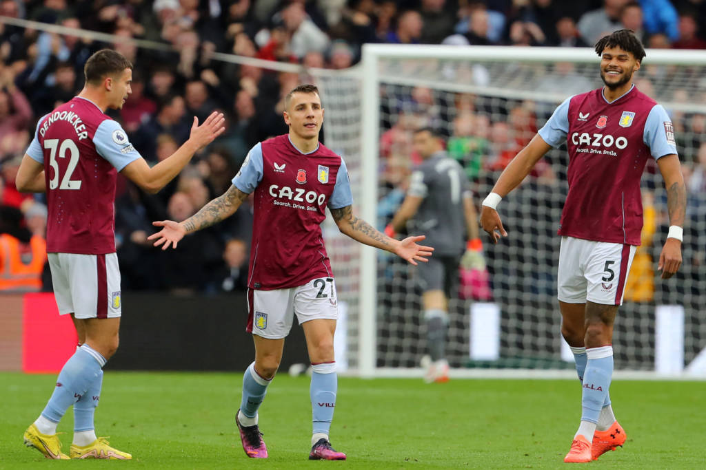 Depois de quatro minutos, Lucas Digne fez uma pintura no gramado do Villa Park. O camisa 27 aproveitou a cobrança de falta, na entrada da área, para bater perfeito, mandar a bola no ângulo esquerdo e ampliar a vantagem.