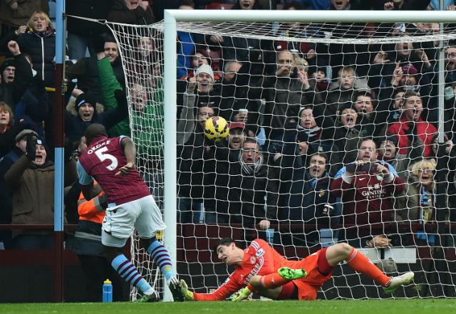 Okore empata no início do segundo tempo em jogada aérea, mas Aston Villa sucumbe ao líder - Credito: AFP