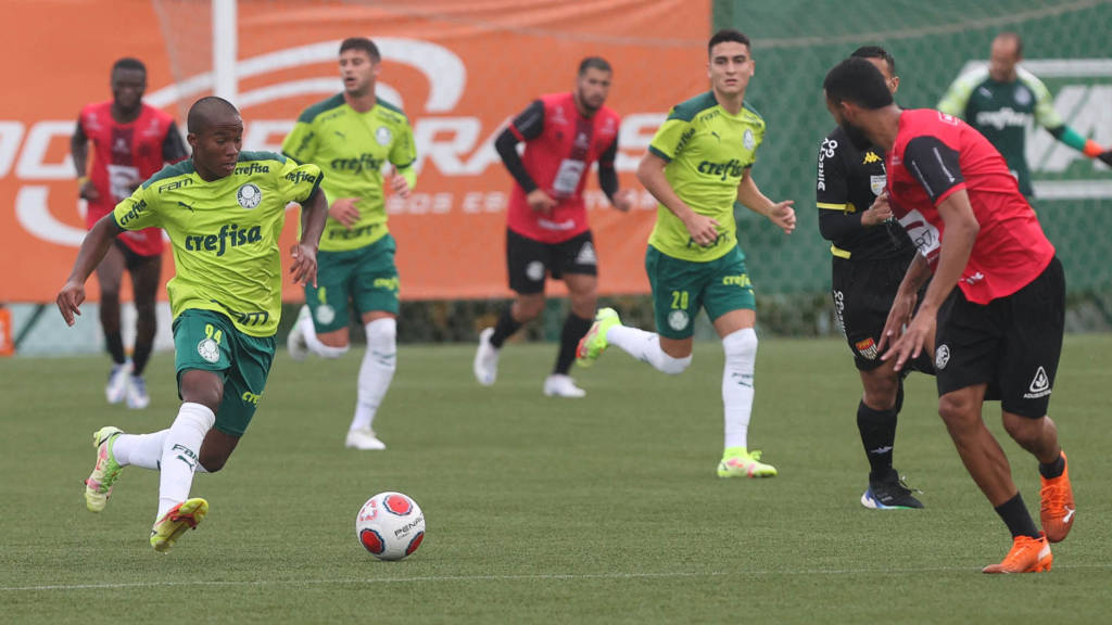 Endrick disputa jogo-treino com os profissionais na Academia de Futebol (Foto: Cesar Greco/Palmeiras)
