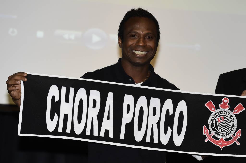 “Vou mandar um recado primeiro. Não existe nada melhor do que essa faixa. Porque eles ficam chorando. Então, vou mandar um ‘chora, Porco’ para eles porque merecem”, avisou Edílson, abrindo a sua faixa (entregue a ele por um amigo, pouco antes) com os dizeres provocativos ao rival. Seguiram-se gargalhadas do veterano atacante do Taboão da Serra e aplausos das dezenas de torcedores do Corinthians presentes no auditório na noite de quinta-feira.