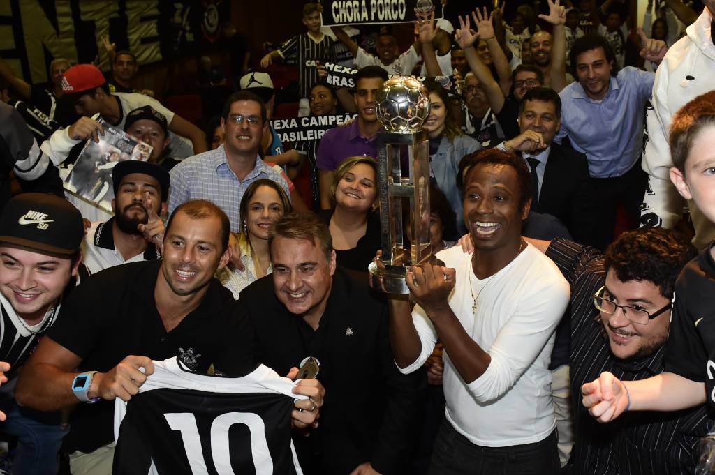 Ao lado dos torcedores organizados, que trouxeram até um bolo de chocolate para a celebração, Edílson cantou o hino do Corinthians ao microfone seguido de “Parabéns a Você”. Depois, eles gritaram juntos os nomes de quase todos os jogadores que participaram da campanha vitoriosa de 2000. “Falta o Klebão! O Kleber!”, avisou o atacante, ignorando que as relações com o lateral esquerdo são estremecidas. Quando estava no Santos, o ex-corintiano foi a um evento de uma uniformizada e atacou o clube que o formou com um coro: “Galinha preta! Vem cá fazer chupeta!”. Já Ricardinho, que brigou com Marcelinho e quis atuar pelo São Paulo, foi celebrado normalmente no evento do Parque São Jorge. “E o Gamarra? Ah, ele é de 99? Não me lembrava”, equivocou-se o Capetinha.