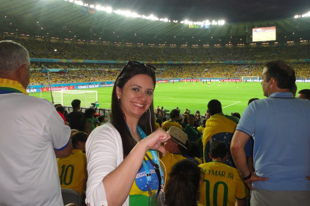 Presente no Mineirão no dia da partida, ela se divide entre o alívio de escapar de anunciar os sete gols alemães e a vontade de trabalhar em um acontecimento histórico do futebol.