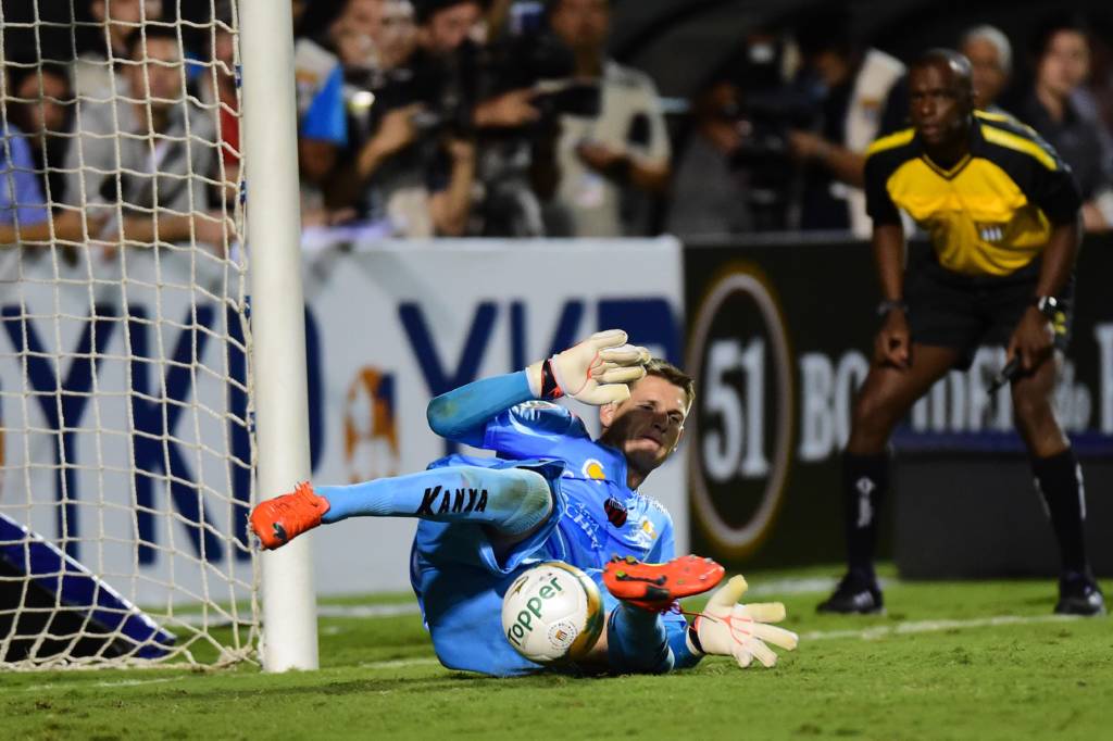 Rildo perdeu e deixou o Ituano muito vivo no Campeonato Paulista de 2014. Até o pênalti de Josa, todos os jogadores acertaram. Então Neto se encaminhou para o oitavo pênalti do Santos.