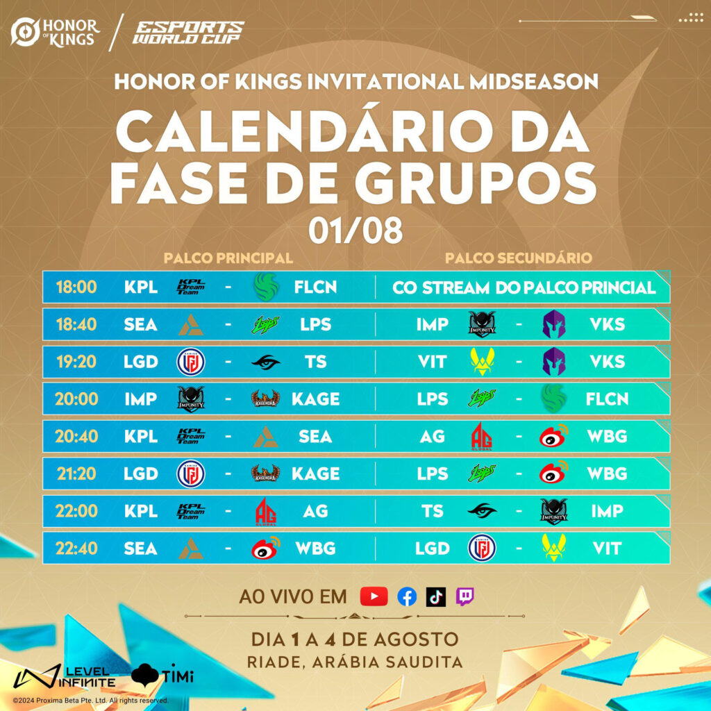 A Level Infinite revelou todos os detalhes do Honor of Kings Invitational Midseason 2024 em Riad, que vai ocorrer durante a Esports World Cup entre 1 e 4 de agosto. Detalhes incluem todos os times que vão competir no torneio e o formato da competição, além da premiação total de US$ 3 milhões (mais de R$ 16 milhões na cotação atual). Para celebrar o evento, Honor of Kings está lançando um novo visual exclusivo baseado na Esports World Cup. Batizado de “Lâmina do Paraíso”, o visual pode ser obtido para o Herói Allain. Junto com o novo visual, Honor of Kings também está revelando a música tema da competição, “Invincible”, que foi produzida em conjunto pelo produtor indicado ao Grammy Mighty Mike, e mixado pelo mixador de áudio vencedor do Grammy Tom Norris.