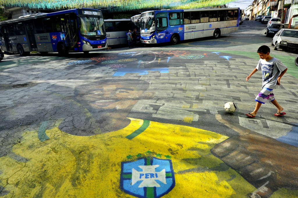 Seu Luiz, tio de Gabriel Jesus, ao lado do mural do camisa 9 da Seleção no Jardim Peri (Foto:Sergio Barzaghi/Gazeta Press)1/72