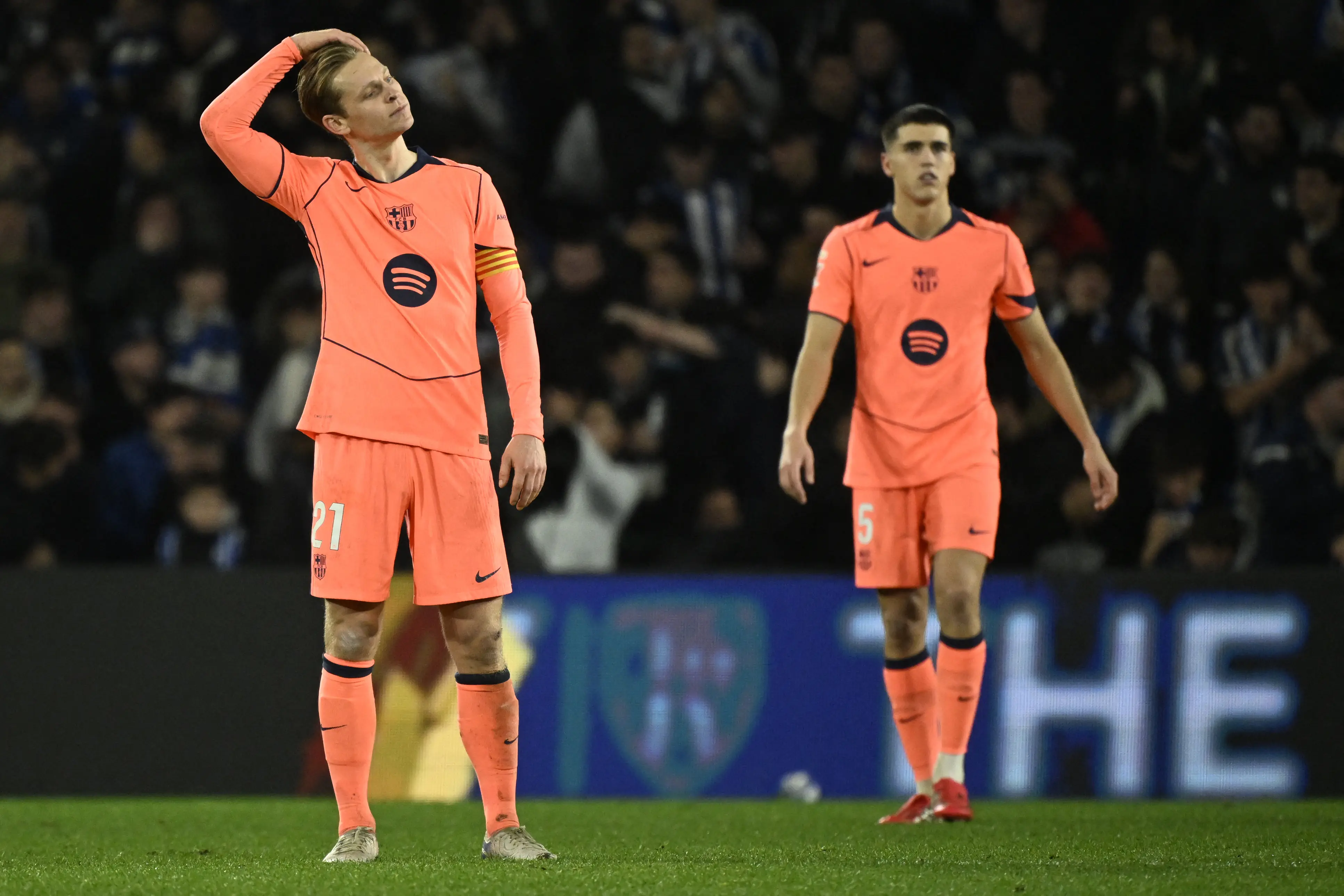 Impreciso, o Barça poderia ter sofrido outro gol, mas o chute de Oyarzabal foi desviado pela cabeça de Pau Cubarsí quando uma bola se dirigia para o gol.