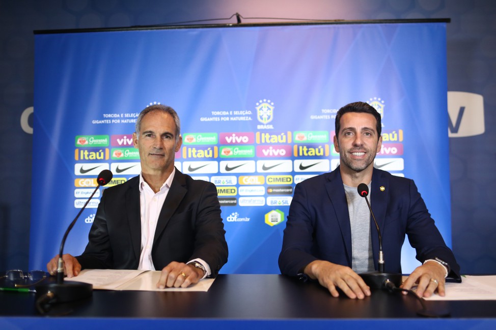 Técnico Carlos Amadeu e Edu Gaspar durante anúncio de selecionados (Foto: Divulgação)