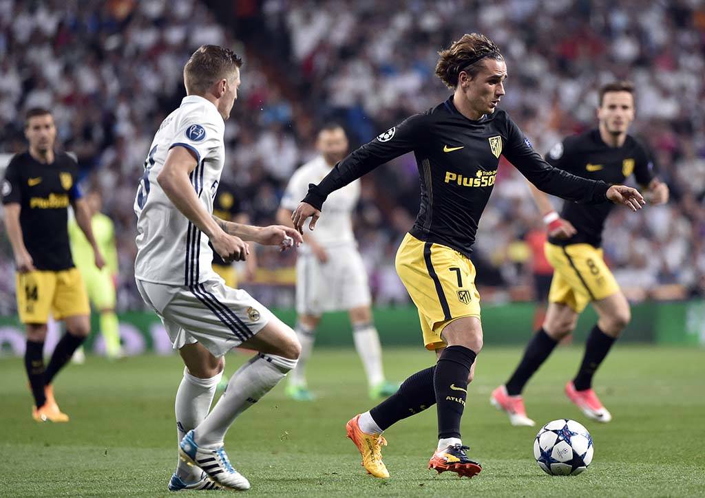 Começo arrasador dos galácticos - O Atlético de Madrid começou adiantando sua marcação e pressionando a saída de bola do Real, que tentava organizar o jogo com Modric e Kroos. Quando conseguiu ir ao ataque, com Carvajal cruzando na área, Benzema acabou perdendo o gol embaixo da trave.