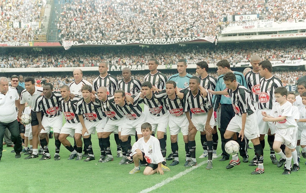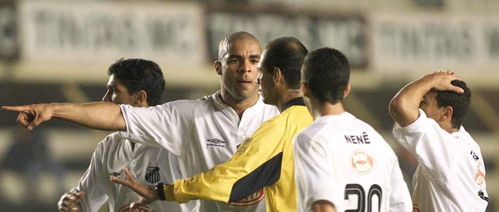 Alex junto com o time do Santos no clássico contra o São Paulo, pelo Brasileiro de 2003 - Foto: Marcelo Ferrelli/Gazeta Press 4/20
