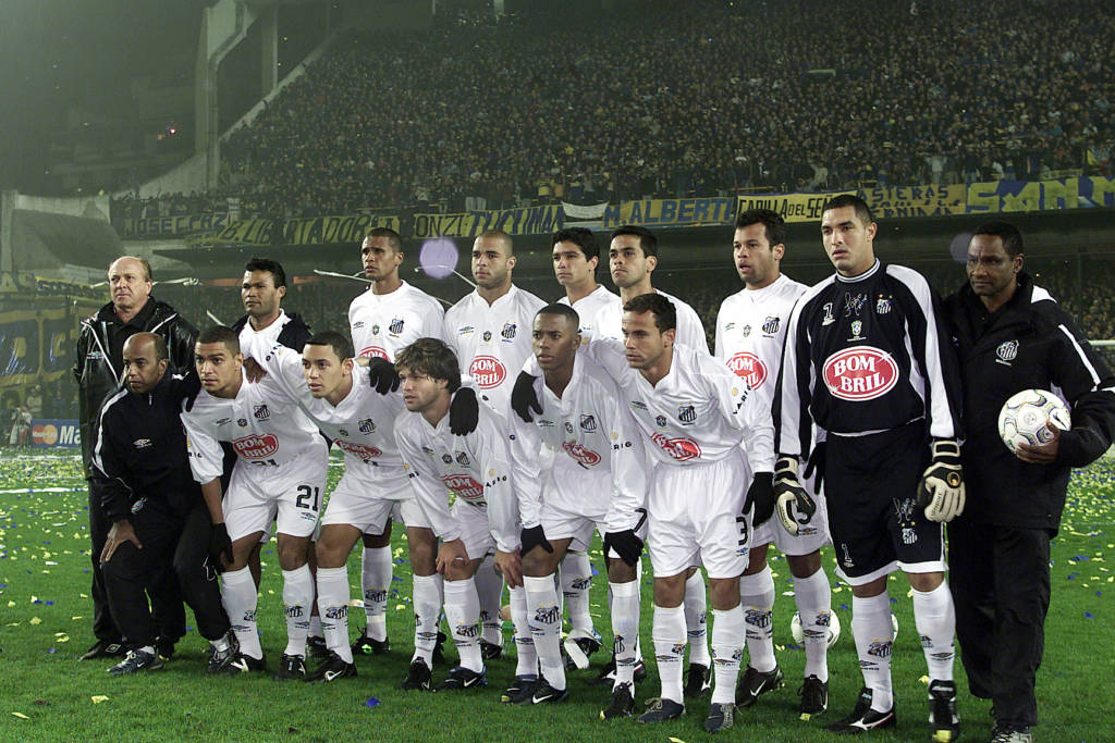 Time do Santos, com Alex, na final da Libertadores de 2003, contra o Boca Juniors - Foto Marcelo Ferrelli/Gazeta Press5/20