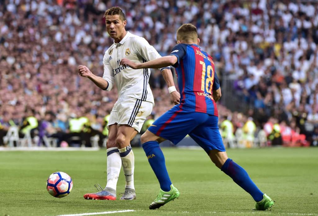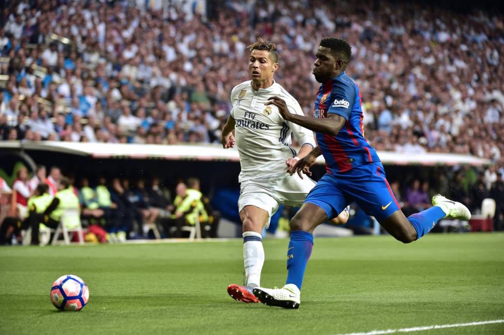 Enquanto Ronaldo Fenômeno e Luis Figo, ídolo de ambas as torcidas, se cumprimentavam nas tribunas do Santiago Bernabéu, a bola começava a rolar no gramado. Em campo, a primeira polêmica não demorou para a aparecer. Logo aos dois minutos, Cristiano Ronaldo sofreu um leve toque de Umtiti dentro da área e desabou pedindo pênalti, ignorado pelo árbitro.