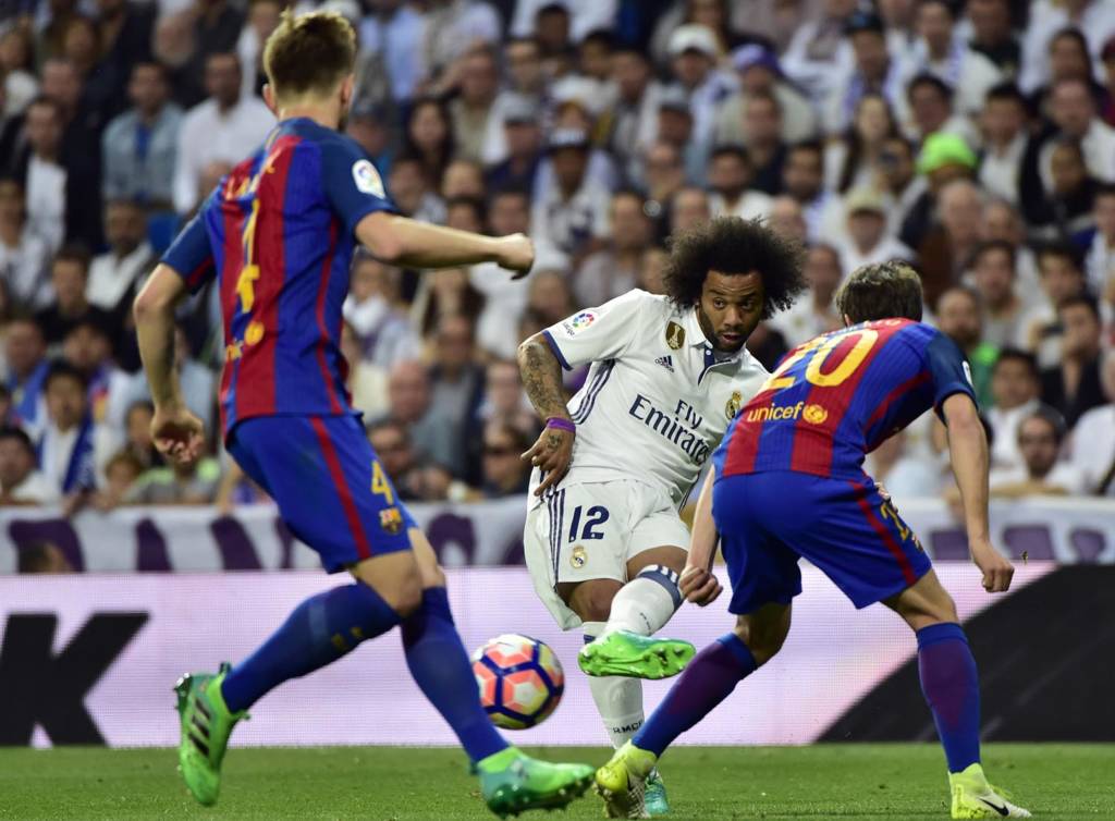 Quem se deu bem depois disso? O Barcelona. Aos 27 minutos, Rakitic recebeu na entrada da área, pela direita do ataque, fintou Kroos e bateu de perna esquerda, colocado, sem chances para Navas. Mais um golaço do Barça no estádio do maior rival e virada consolidada.
