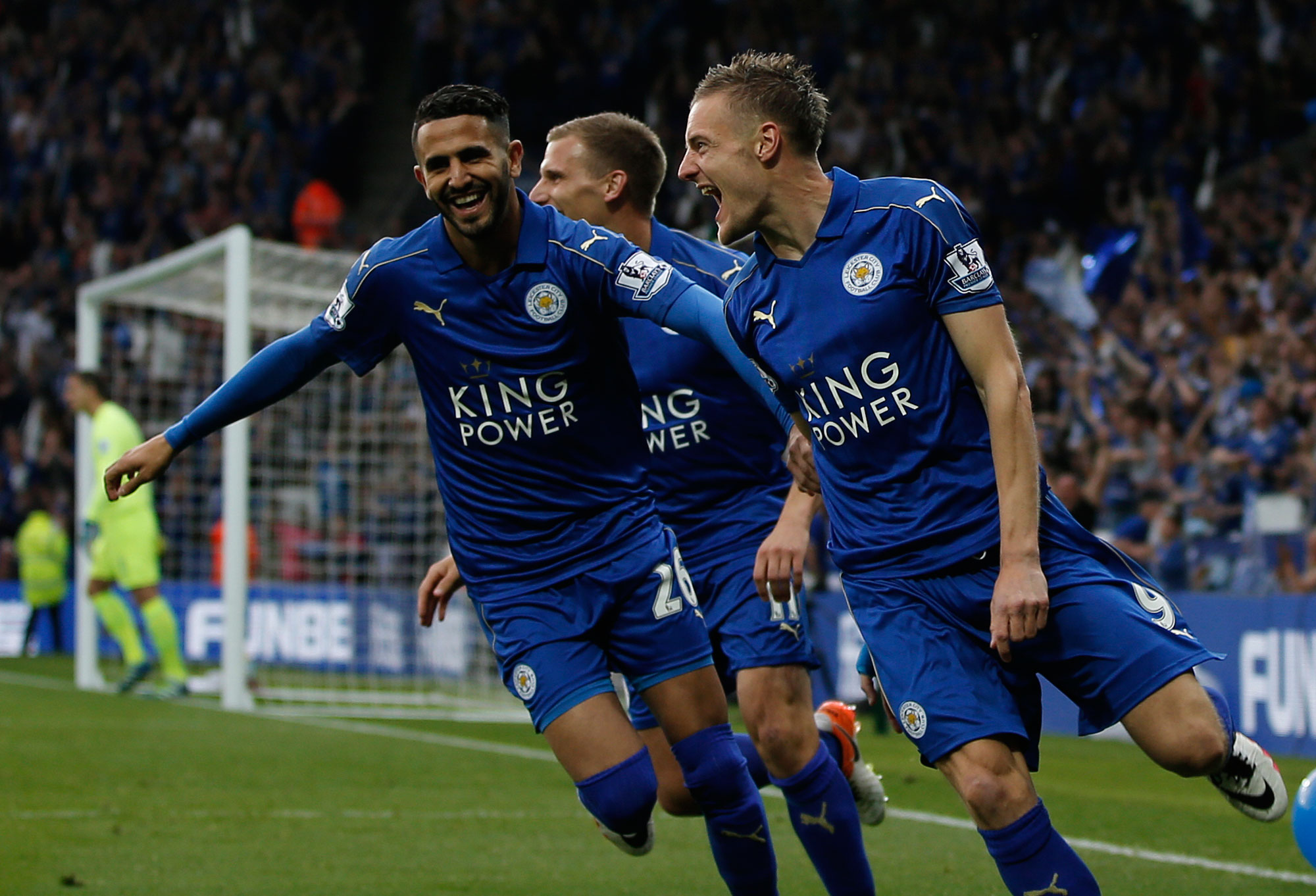 O artilheiro Vardy deixou sua marca duas vezes, chegou a 24 gols no Campeonato Inglês e ainda perdeu um pênalti. Além dele, o meia King, que está no clube desde 2006, balançou a rede. Nos minutos finais de jogo, Mirallas descontou para o Everton.