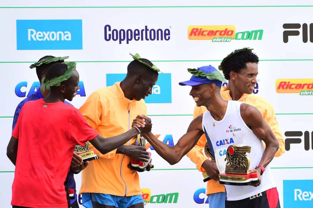 “Agradeço a hospitalidade do Brasil, de todo mundo da corrida”, disse Yimer Wude Ayalew, que contou com ajuda na tradução de suas palavras de seu compatriota Feyisa Lilesa, terceiro colocado da prova masculina.