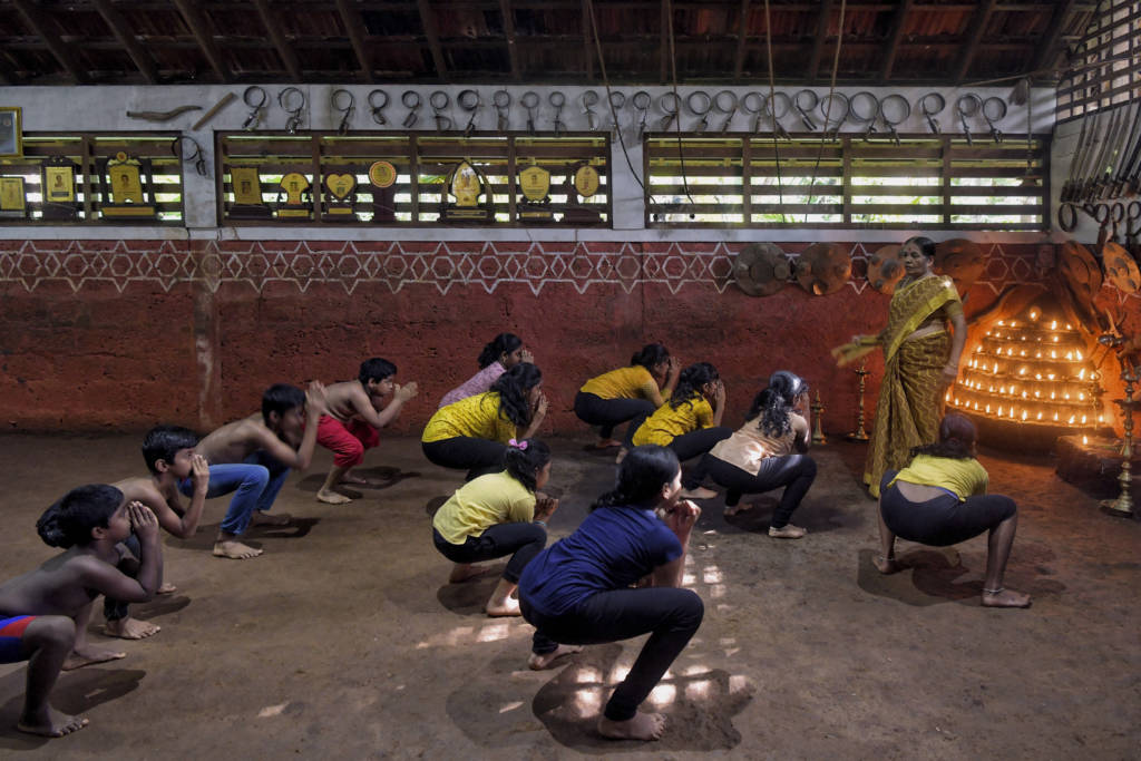 O kalari, que tem elementos de dança e ioga, pode envolver o uso de armas como espadas, escudos e bastões. Com teoricamente 3.000 anos de existência e mencionado nas antigas escrituras hindus, a arte marcial é vinculada à religião.