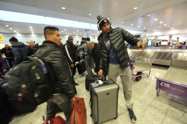 Cole Aldrich, do New York Knicks, no Aeroporto Internacional de Londres (Foto: Randy Belice) - Credito: AFP