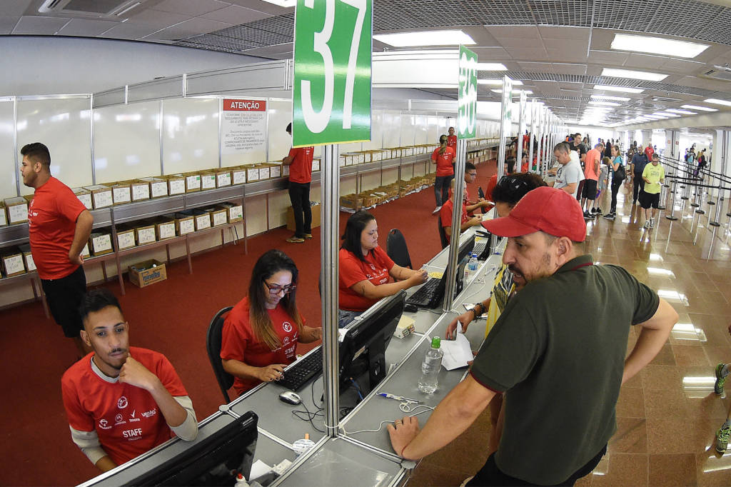 Fotos da retirada dos kits da São Silvestre