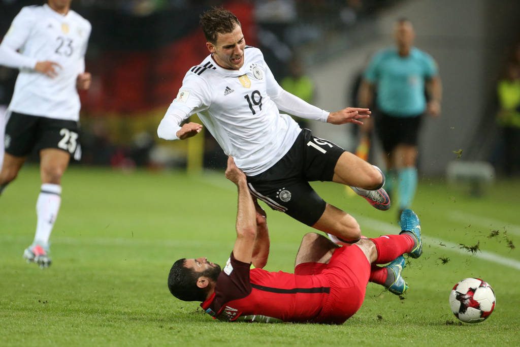 O primeiro tento do time germânico saiu logo aos oito minutos e foi um golaço. Após cobrança de escanteio, a bola passou entre as pernas de Garayvev e sobrou na segunda trave para Goretzka, que bateu de calcanhar e estufou as redes.