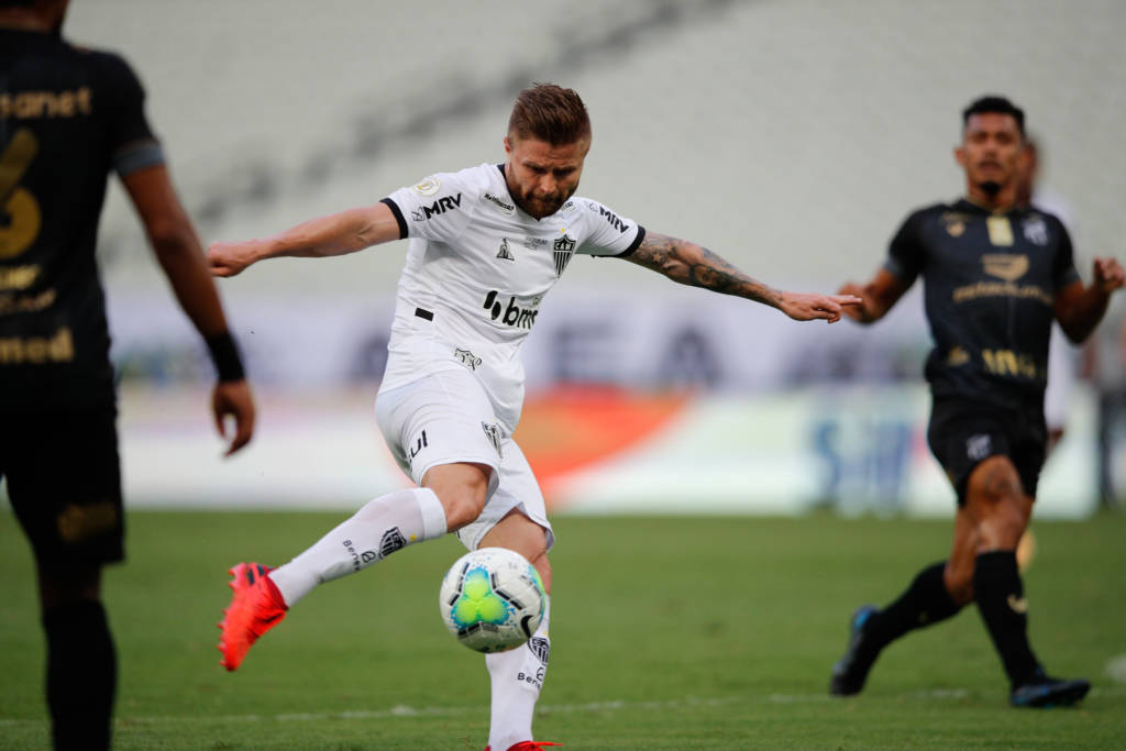 Logo após a expulsão, Marrony foi lançado nas costas da defesa pela esquerda e, na tentativa de passar por Fernando Prass, acabou sofrendo pênalti do goleiro do Ceará. Aos 28 minutos do segundo tempo, Keno bateu no canto direito e empatou para o Atlético-MG.