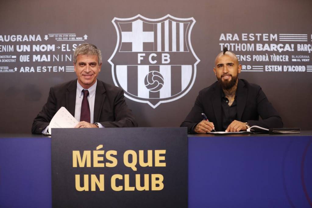 Arturo Vidal assinou seu contrato de três temporadas com o Barcelona na manhã desta segunda-feira (Foto: Reprodução)