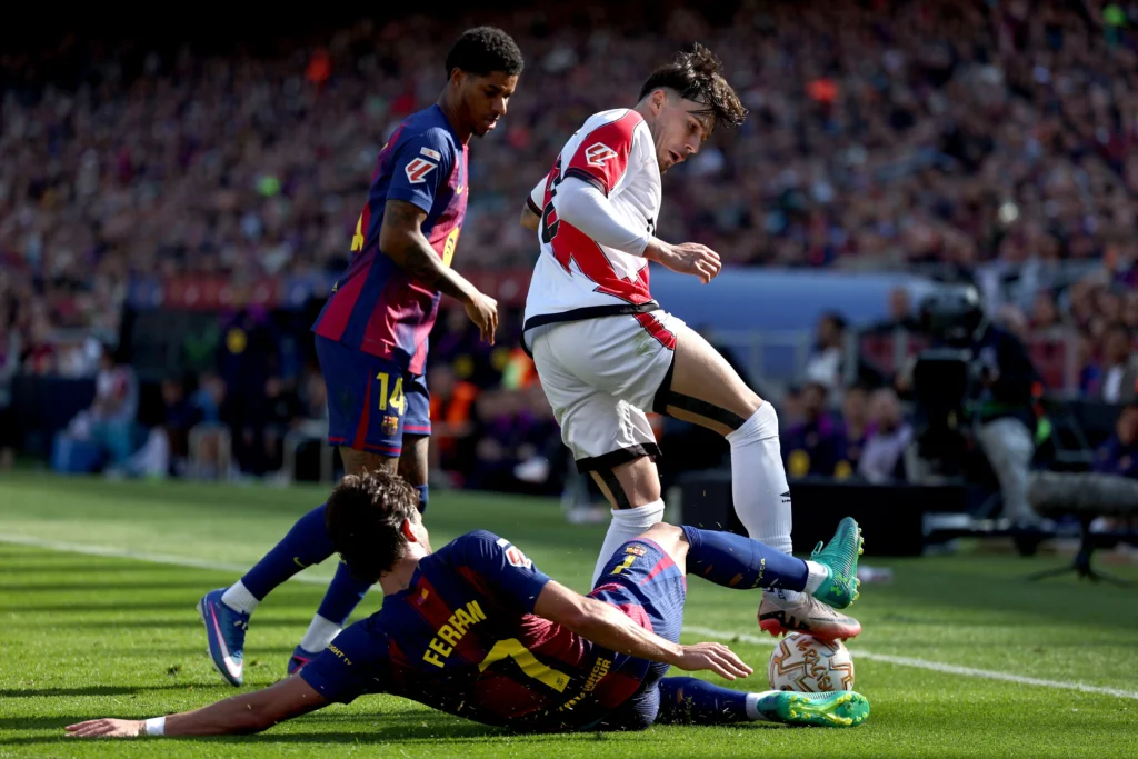 🟨 Cartões Amarelos: Raphinha, Lamine Yamal e Cubarsí (Barcelona); Óscar Valentin, Fran Pérez, Ismael Ciss e Palazón (Rayo);