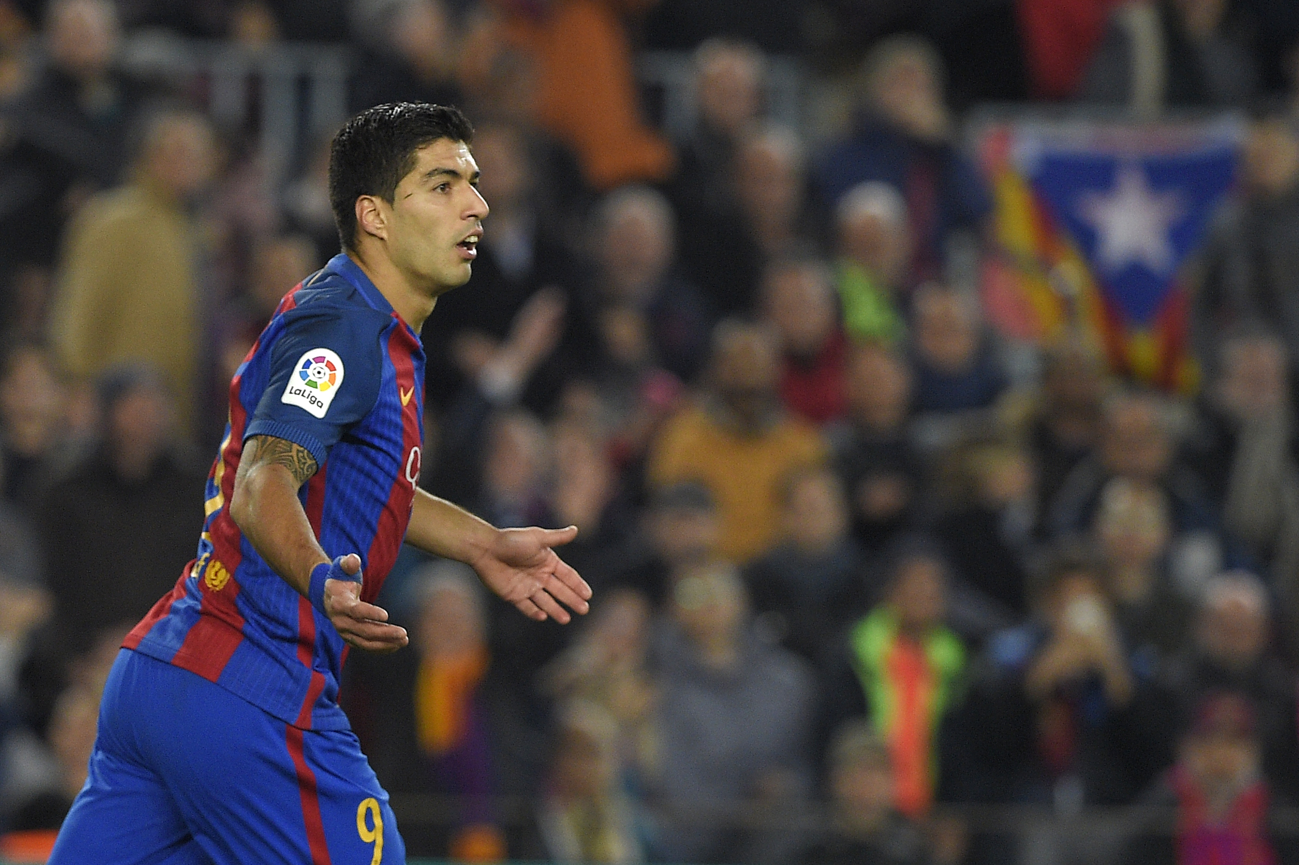 Além de receber suspensão automática, centroavante uruguaio infringiu um dos artigos do Código de Disciplina (Foto: Lluis Gene/ AFP)