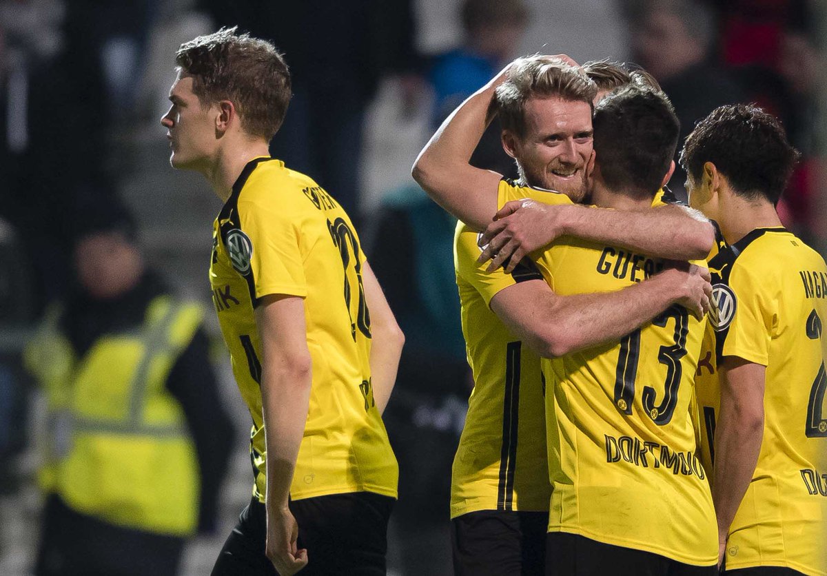 Sem grandes sustos, o Borussia Dortmund venceu o Lotte, da terceira divisão alemã, nesta terça-feira, por 3 a 0, e está classificado para a semifinal da Copa da Alemanha. A partida, que seria inicialmente realizada no dia 28 de fevereiro, mas acabou adiada devido ao mau tempo, foi realizada na Osnatel-Arena, decidida com três gols na segunda etapa.