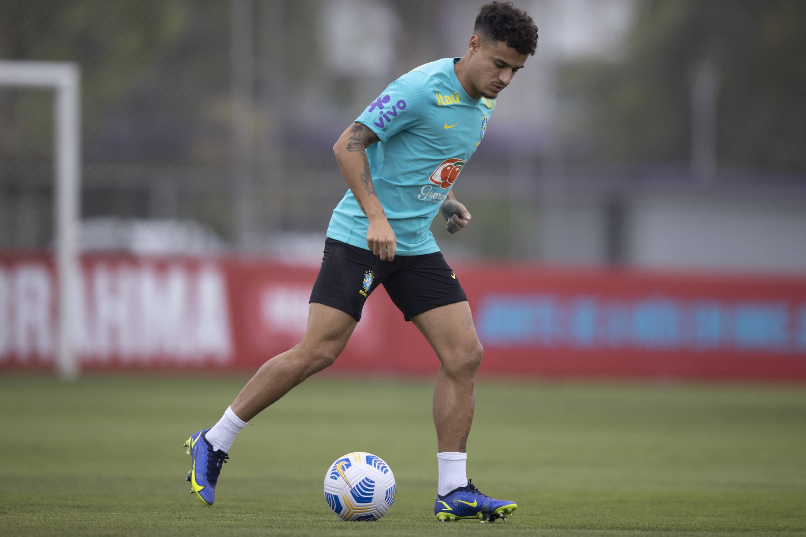 Os únicos atletas que treinaram com bola foram o meia Philippe Coutinho e os goleiros Ederson e Gabriel Chapecó. O lateral-esquerdo Reginaldo, das categorias de base do Corinthians, completou a atividade.