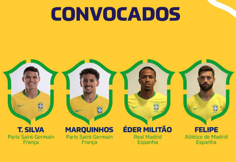 DEFENSORES: Éder Militão (Real Madrid), Felipe (Atlético de Madrid), Marquinhos (Paris Saint-Germain), Thiago Silva (Paris Saint-Germain)