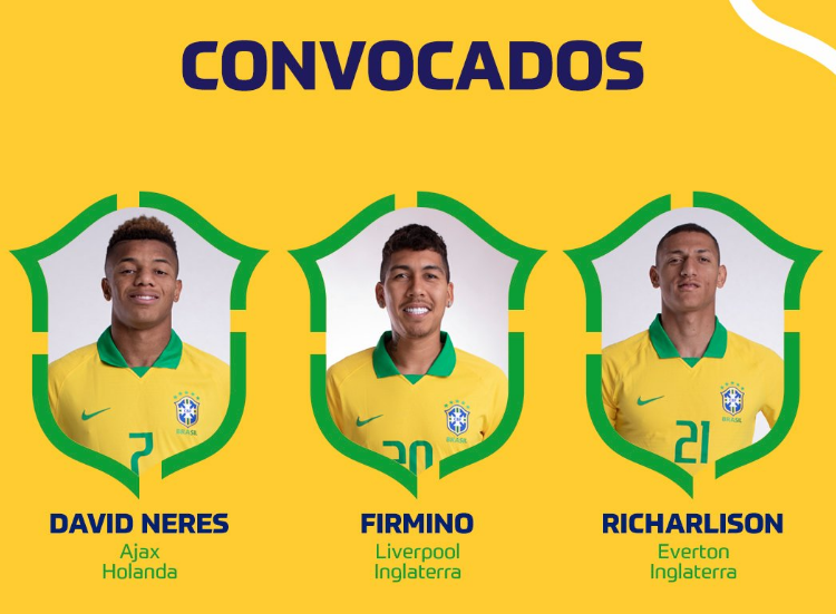 ATACANTES: David Neres (Ajax), Firmino (Liverpool), Richarlison (Everton), Gabriel Jesus (Manchester City), Rodrygo (Real Madrid) e Willian (Chelsea).