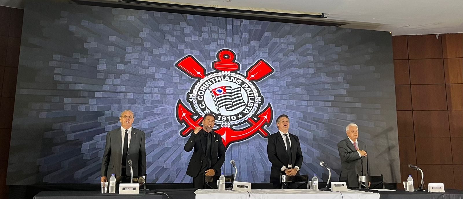 O evento contou com as presenças de sócios, jornalistas, influencers e representantes da nova diretoria, além de figuras ilustres como o vice-presidente do Flamengo Marcos Braz. O dirigente rubro-negro foi registrado ao lado de Rubão, diretor de futebol do Timão.