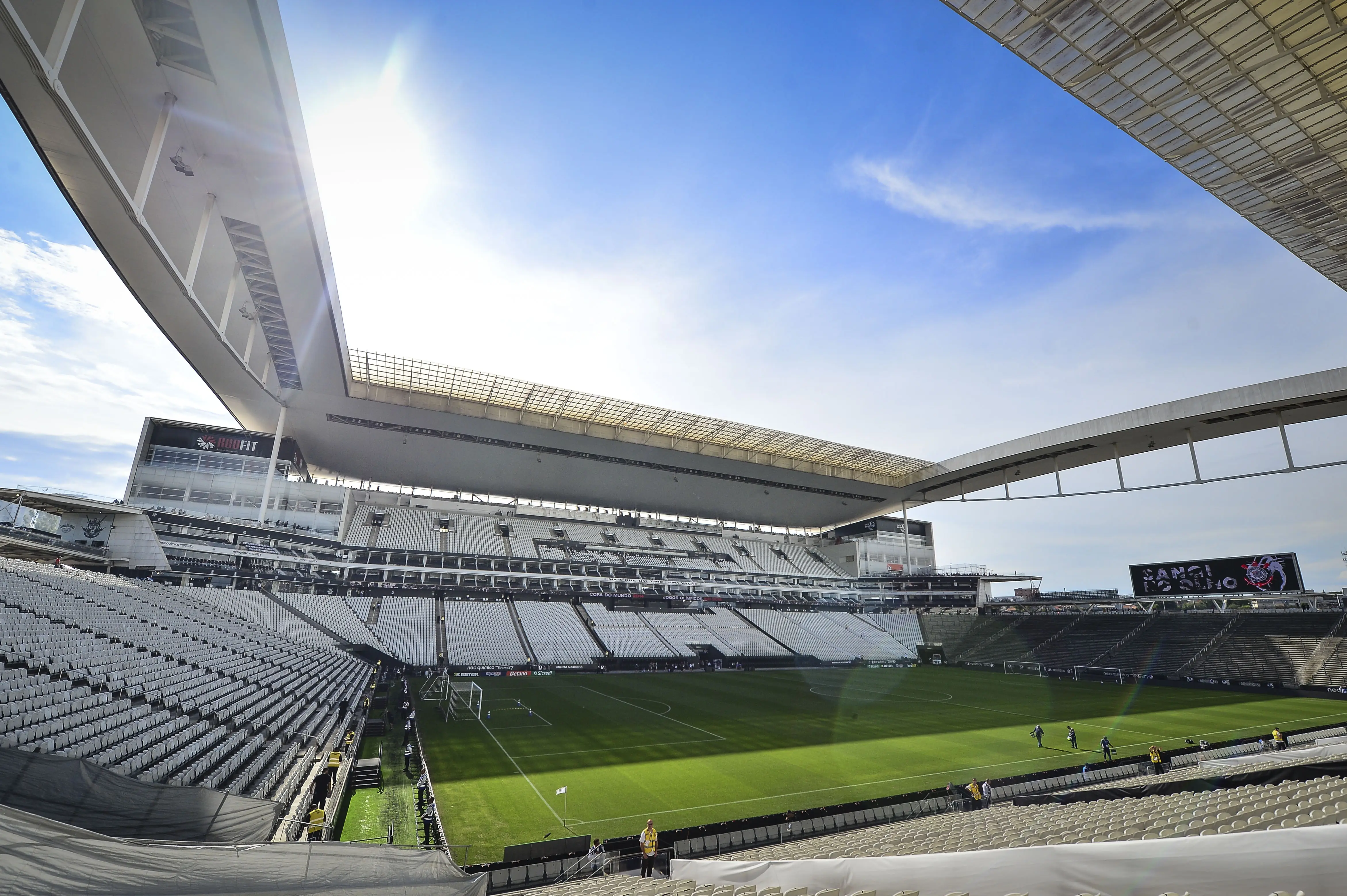 Na época, o estádio ainda se chamava Arena Corinthians, nomeação prévia à venda dos naming rights para a Neo Química, negócio selado em setembro de 2020. A arena foi construída justamente para receber o maior torneio de seleções do futebol. As obras começaram em 2011, mas o Alvinegro estreou no estádio apenas em maio de 2014.