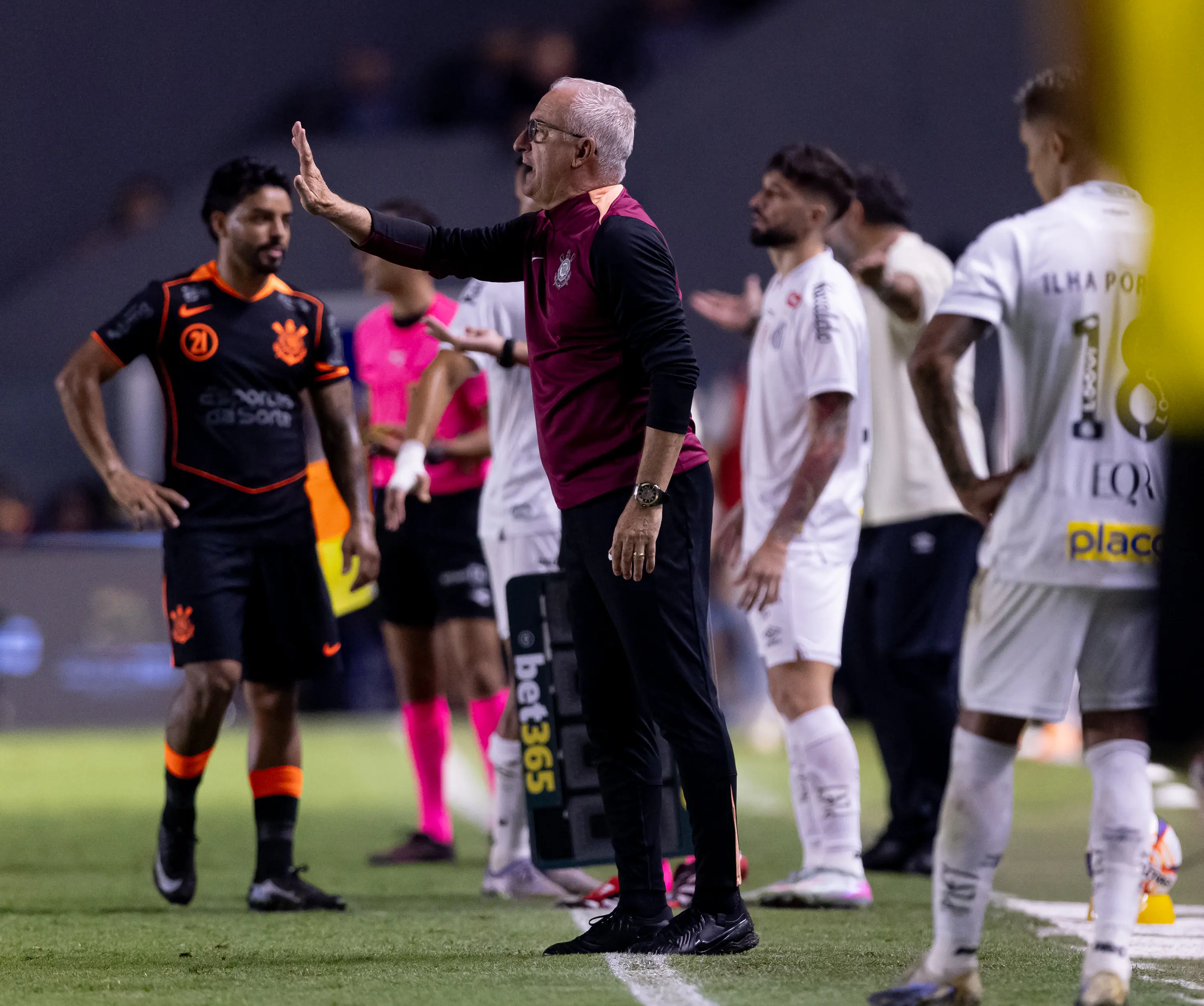 Dorival Júnior saiu na bronca com a arbitragem após o empate do Corinthians no clássico contra o Santos, nesta quinta-feira, na Vila Belmiro, pela quarta rodada do Campeonato Paulista. O treinador crê que o resultado teve inteferência direta do árbitro Lucas Canetto Belotti e falou em "erro grotesco".