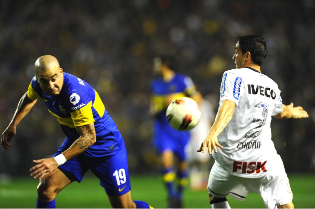 Vestindo a camisa do Boca Juniors na foto, Santiago 'El Tanque' Silva teve passagem breve e discreta pelo Corinthians em 2002. Com fama de matador, o atacante uruguaio só fez cinco jogos e não marcou nenhum gol. Em 2012, o centro-avante reencontrou o clube na final da Libertadores e saiu derrotado (Foto: Djalma Vassão/Gazeta Press)5/5