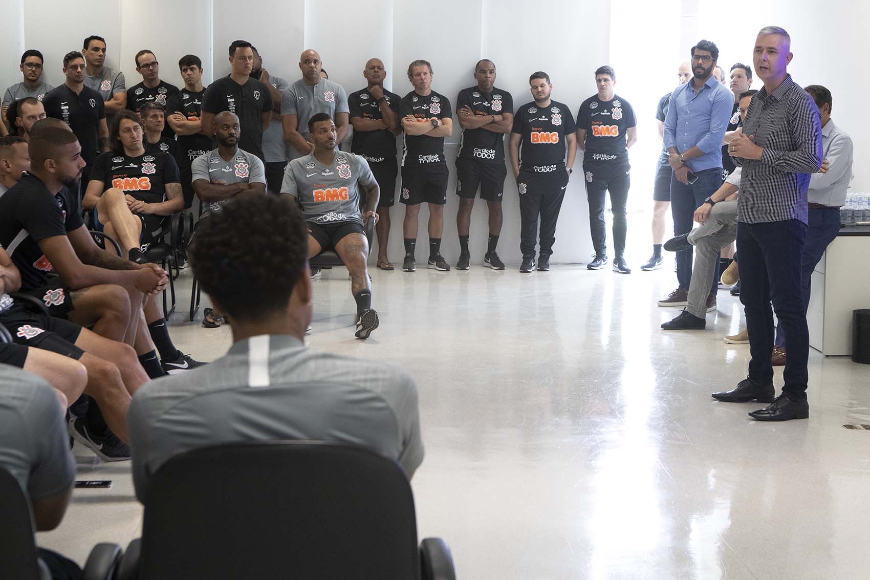 “A gente, hoje, com essas questões, têm que criar meios dos caras sentarem, conversarem, falarem sobre a vida. Eu tenho certeza que muitos dos jogadores, e não é no Corinthians, em qualquer clube, o cara que está ao lado não sabe se o outro tem pai, mãe, filho, um, dois ou três, se tem problema, se não tem... É esse tipo de vínculo que a gente tenta criar para que os caras criem intimidade”.