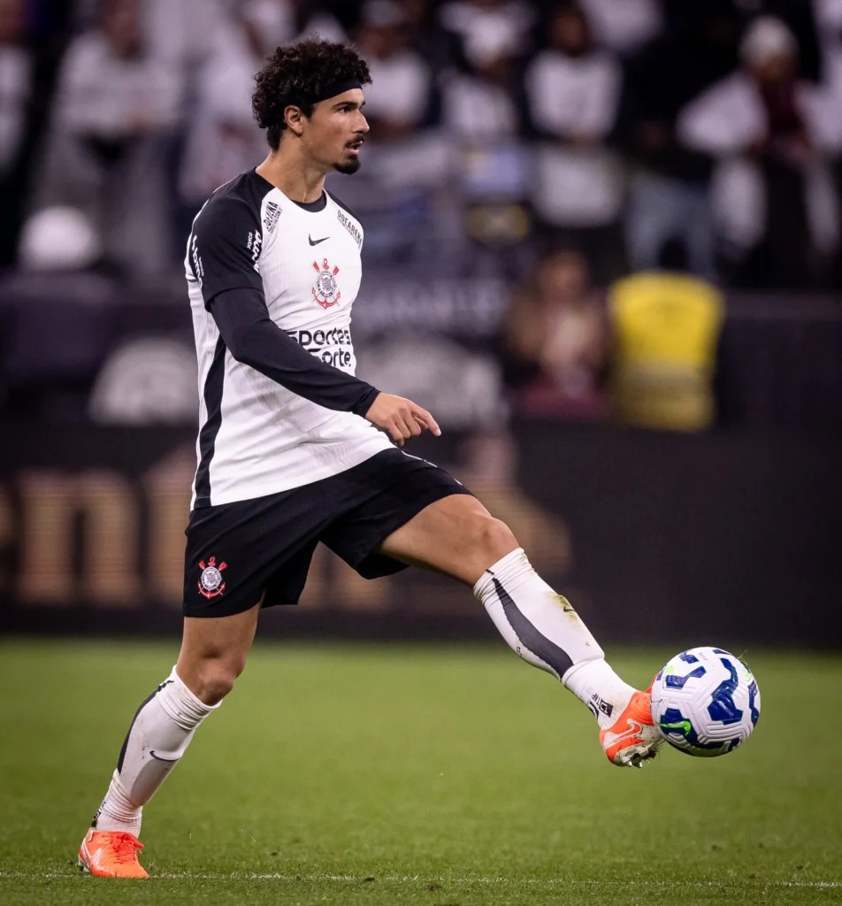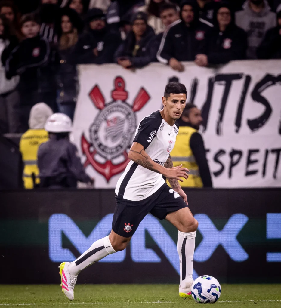 Angileri: bom jogo do lateral. Apoiou o ataque o tempo inteiro, especialmente porque o Corinthians encontrou muitos espaços pelo lado esquerdo. Finalizou com perigo ao gol do Fortaleza duas vezes, parando em uma defesa do goleiro e, depois, na trave. Só não acertou muitos cruzamentos. Defensivamente, não comprometeu. (Foto: Rodrigo Coca/ Ag. Corinthians)4/8